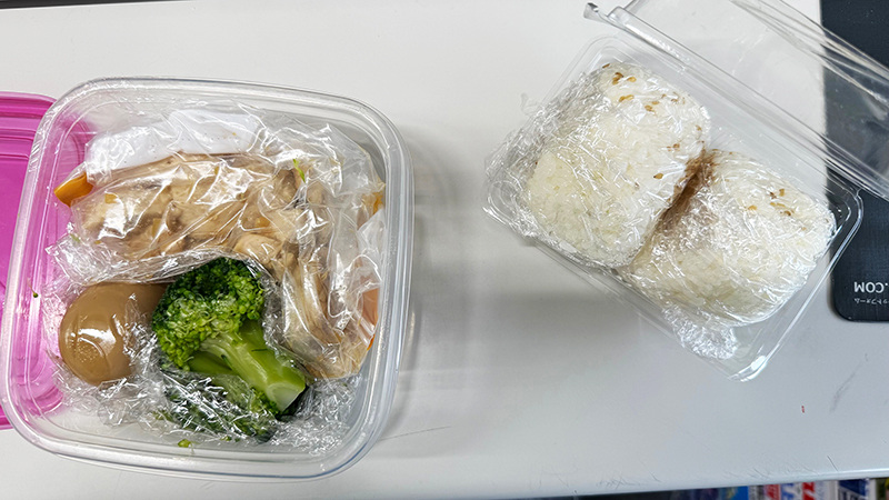 とはいえ、食事に関しては、昼食に前回紹介された「塩むずび、鶏肉、卵」のセットを自宅で朝作って、もっていくようにした。