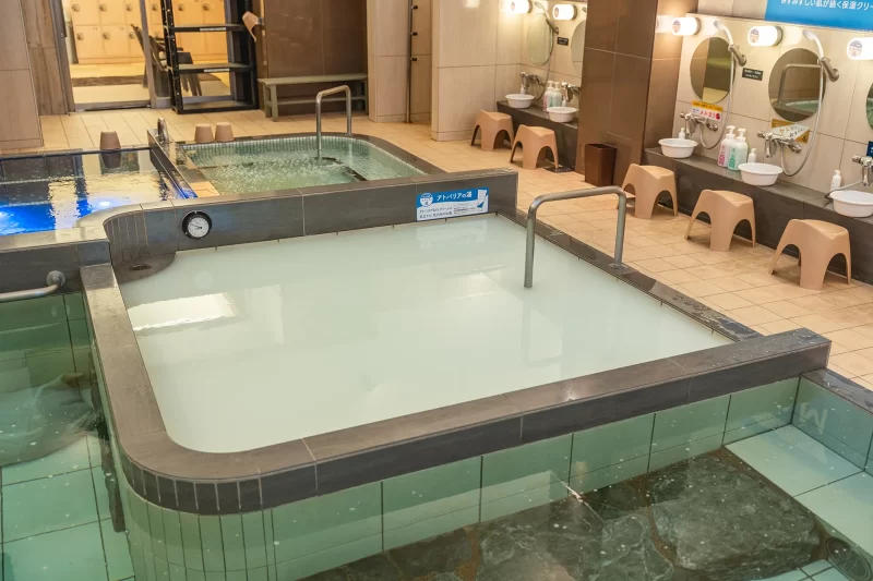 そんな松本湯に、AESTURAの人気シリーズ「アトバリア365 クリーム」をイメージした乳白色の特別なお風呂を用意。