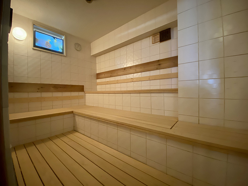 男女共にサウナ室があり、どちらも余裕で8〜10名は入れる広い空間になっている。