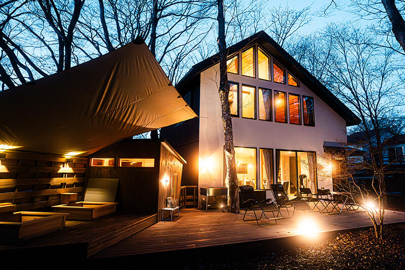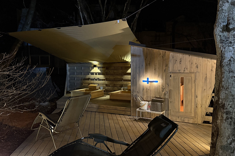 一棟貸切りとなる貸別荘で、富士の天然水と熱々のサウナが楽しめる施設だ。