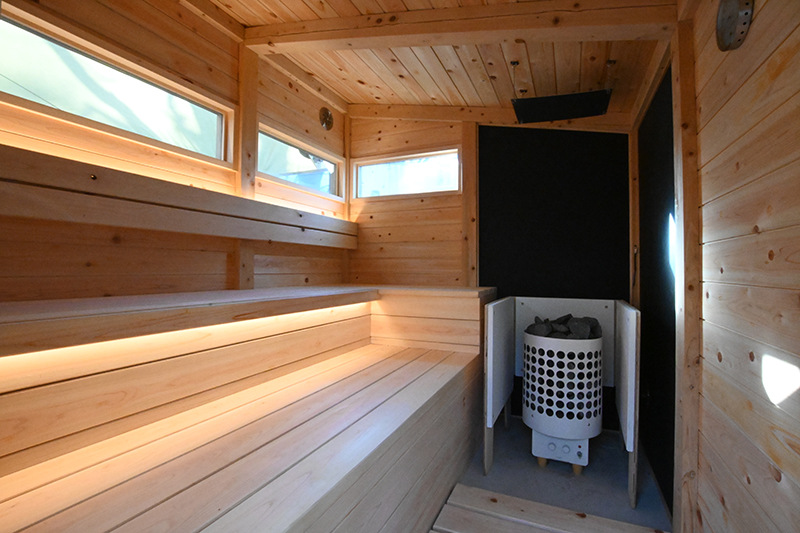 ヒノキの香りもする。気密性も高く、蒸気や熱がまったく逃げないので、熱々のサウナが楽しめる。