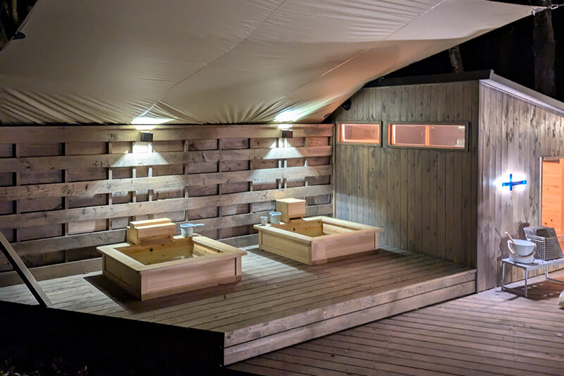 外に出ると2つの風呂があり、こちらもヒノキでつくられている。