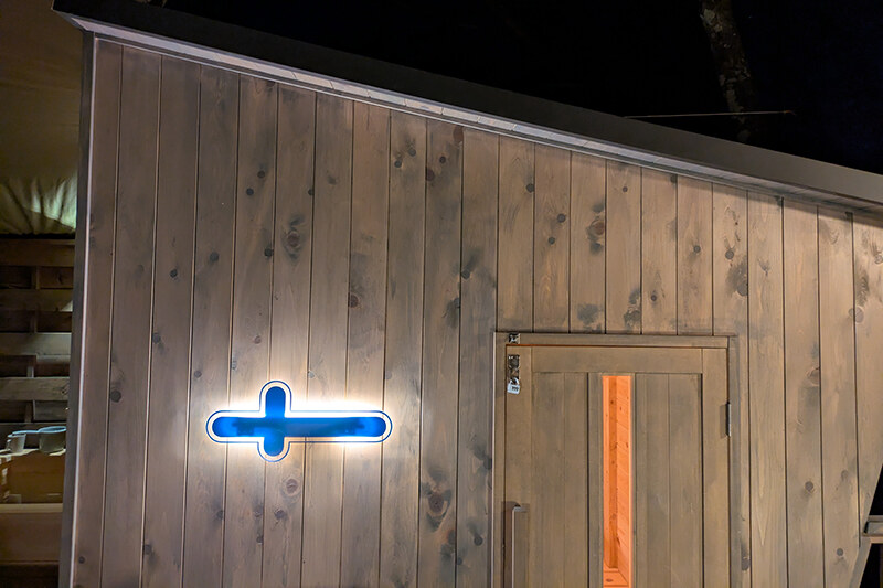 肝心のサウナは、愛知県の新メーカー「reboot」によってつくられた国産ヒノキを贅沢に使ったもので、4~5人が入れるほどの広さ。