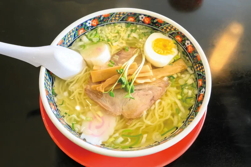 お昼は名店「あじさい」で函館名物の塩ラーメンをいただく。