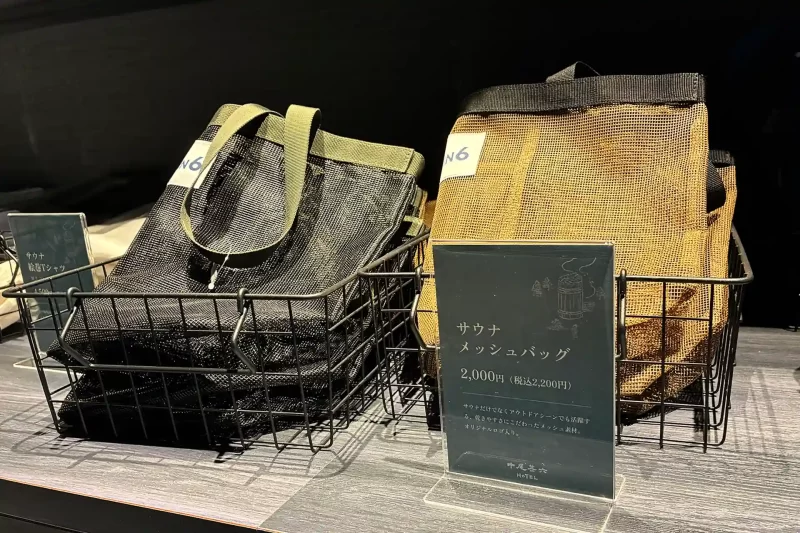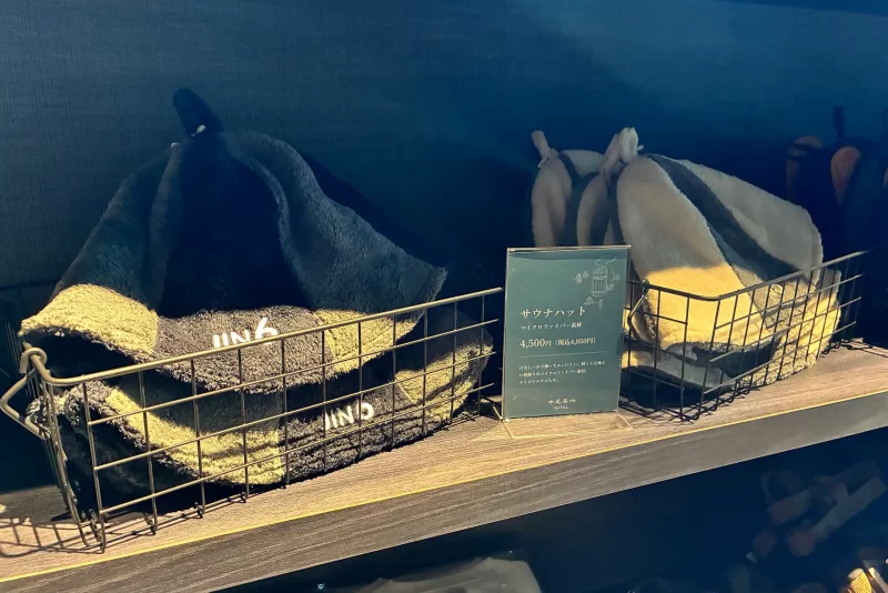 さっそく施設内に入ると、まず目に飛び込んでたのはサウナグッズの数々。