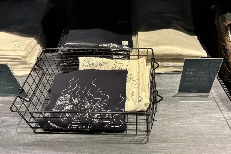 店内に入ると、JIN6サウナのオリジナルグッズがズラリ。