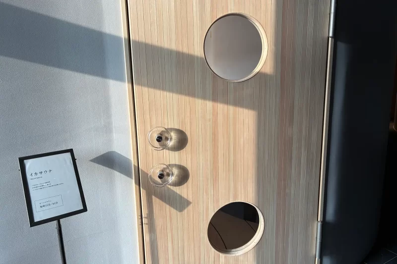 そのネーミング通り、実際に使われていたイカのイケスを水風呂にしたもの。