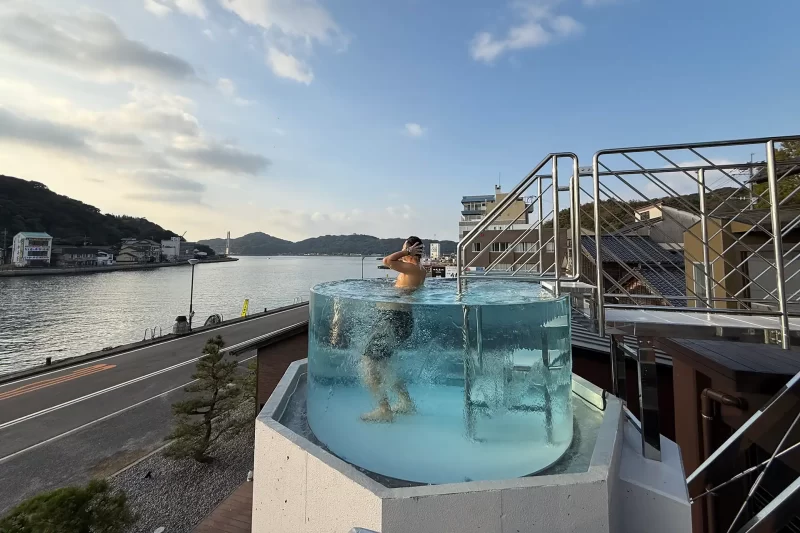 見上げれば天に浮かぶような透明な水風呂。