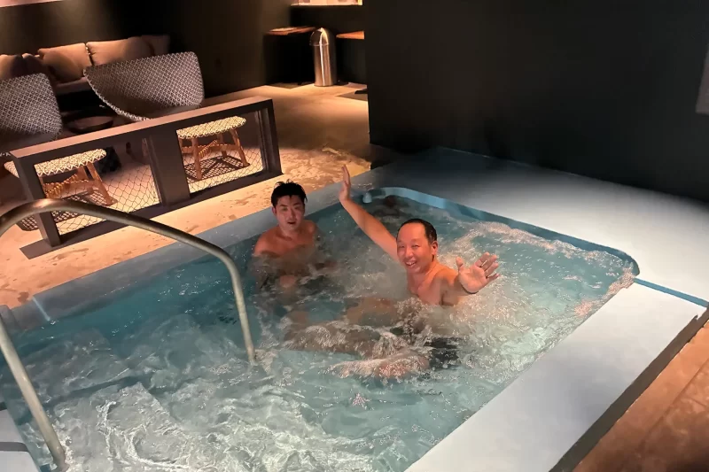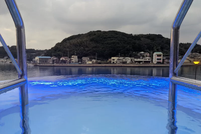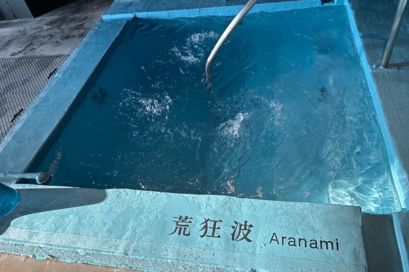 イカのイケスを使った呼子ならではの水風呂。強弱2種類あるので、好きな方を選ぼう。