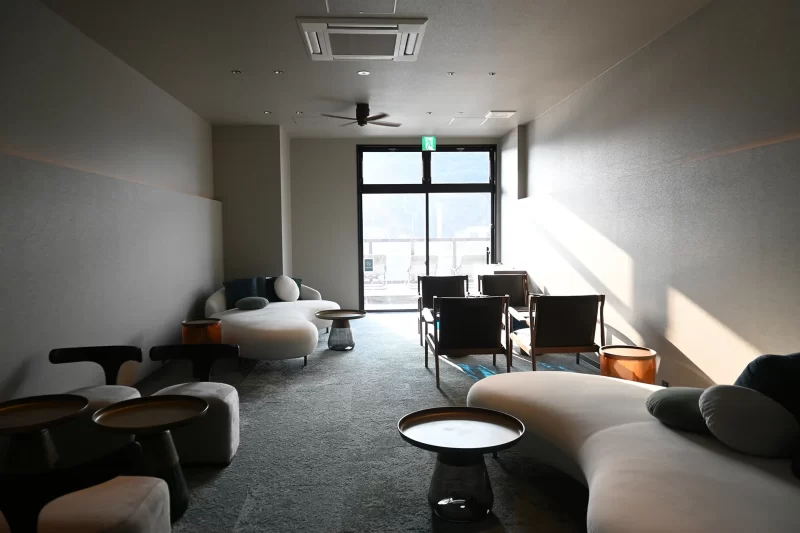 1階と2階には外気浴スペースがある。潮風を感じ、風の音を聴き、流れる雲を眺めながら至福のととのいタイム。内気浴スペースもあり、さらには仲間と語らいながらリラックスできるラウンジも完備。