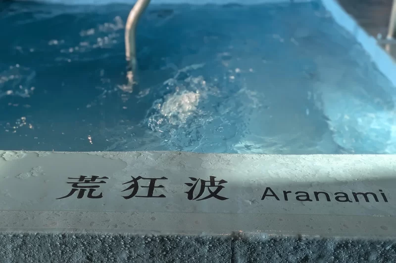 冷え冷えのシングルで水流の勢いが強い「荒狂波 Aranami」と、25℃前後と水温もまろやかで水流もおとなしい「凪 Nagi」の2種類。