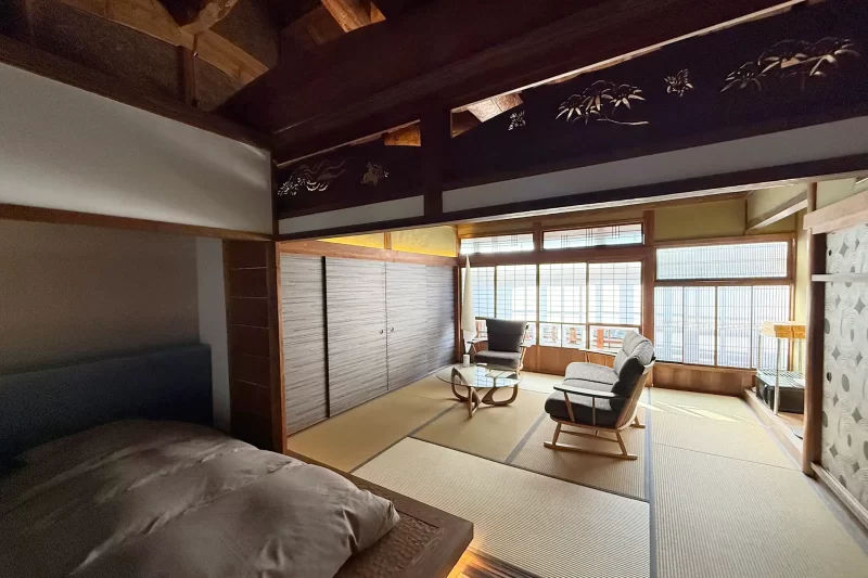いただくのは、古民家をオシャレに進化させた店内。二階は2026年1月30日から古民家宿泊の施設として利用できる。