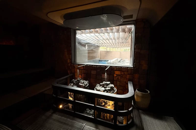 洞窟の中にいるような没入感で、セルフロウリュもOK。1人でじっくり浴びるには最適でしょう。
