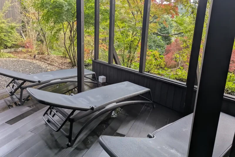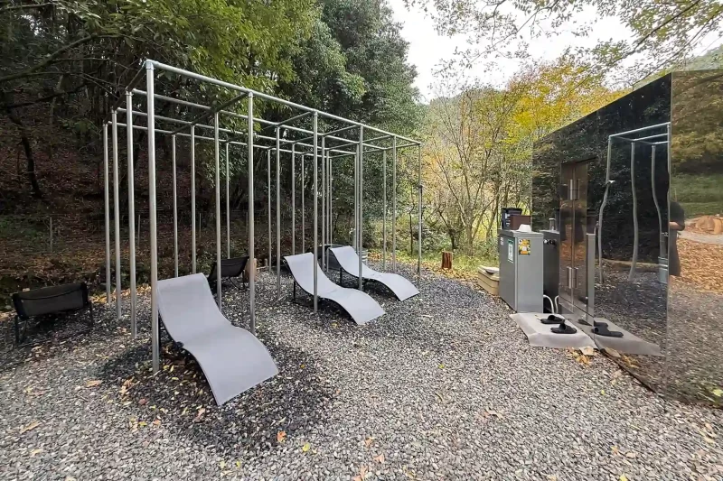 ととのいスペースは屋内と屋外にあり、自然を眺めながらの外気浴を楽しめます。