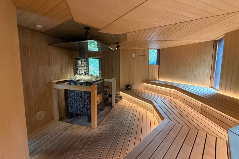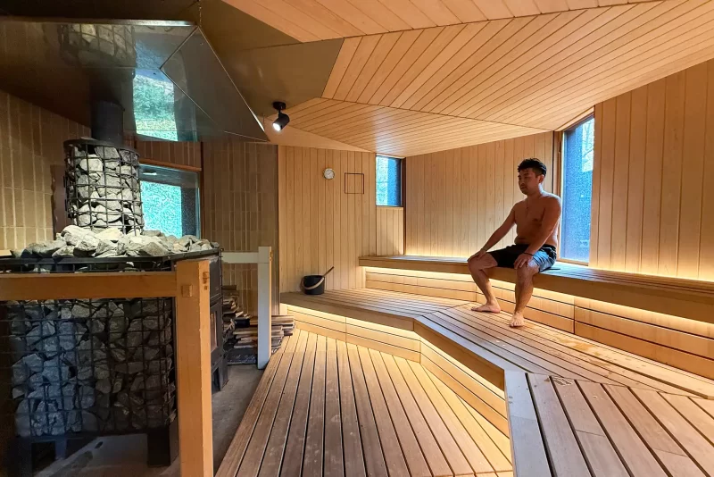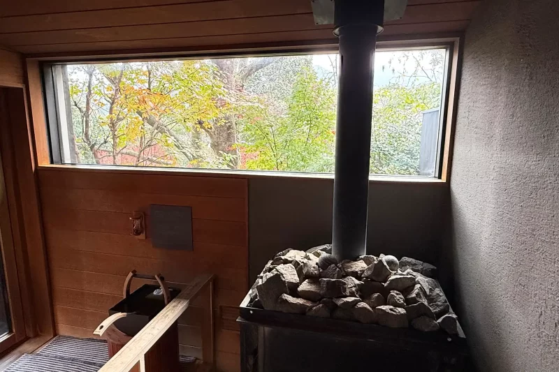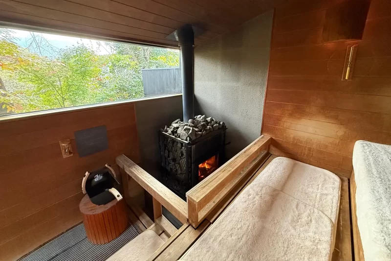 こちらはバレルサウナで、大きめの窓から木々を眺めているといつの間にか結構な時間が経ってしまいます。